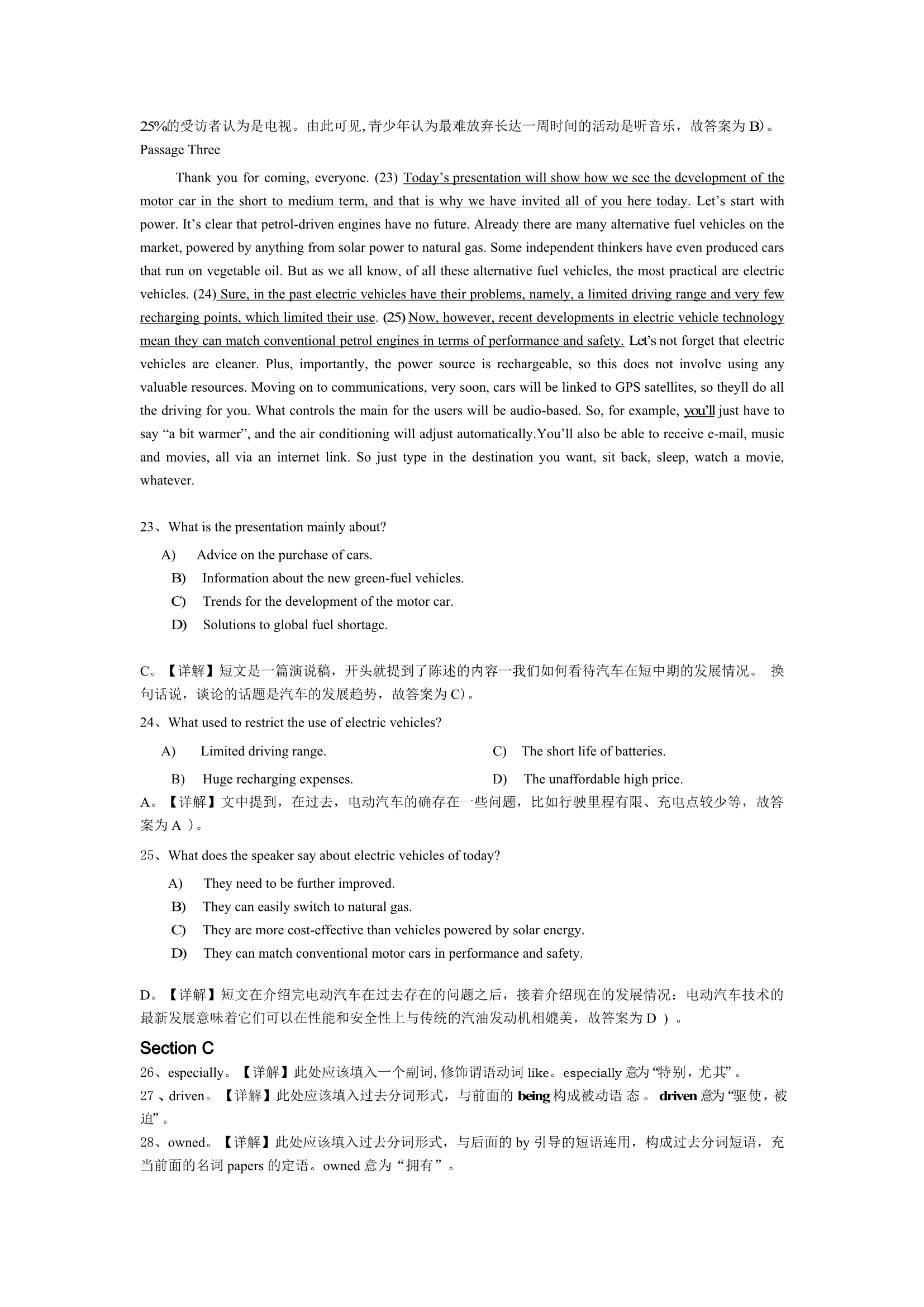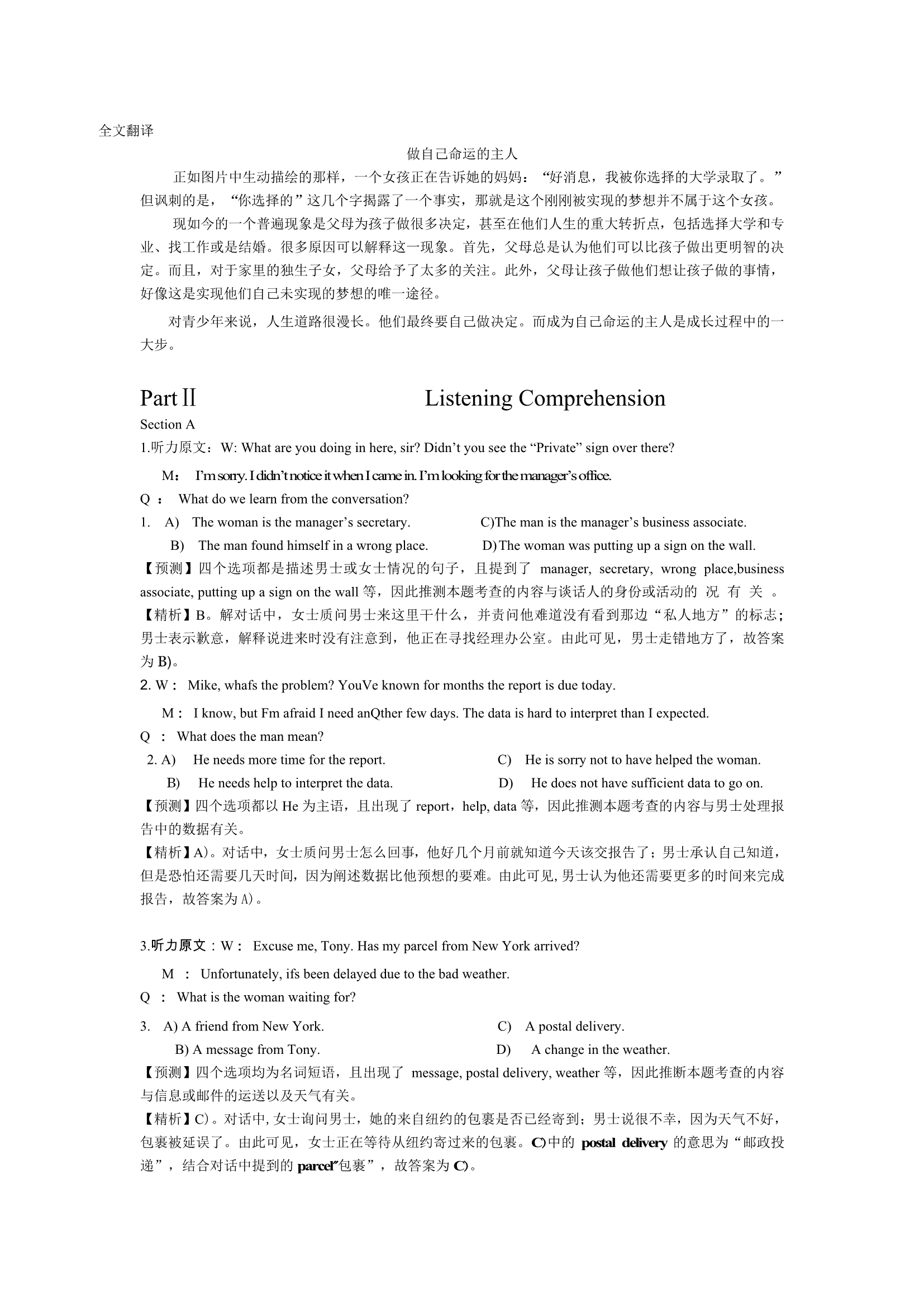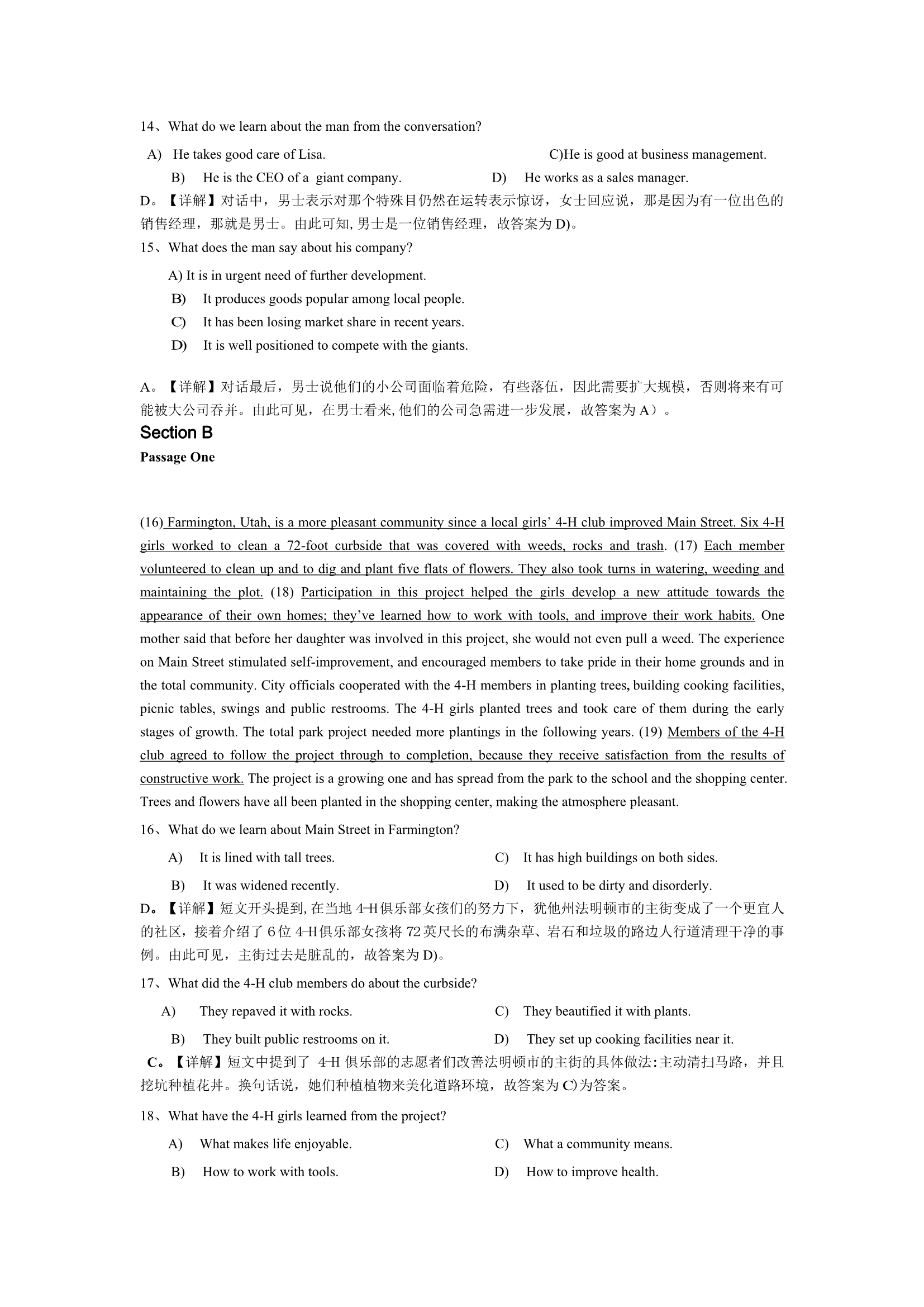 2015年6月英语四级真题答案及解析(卷三)