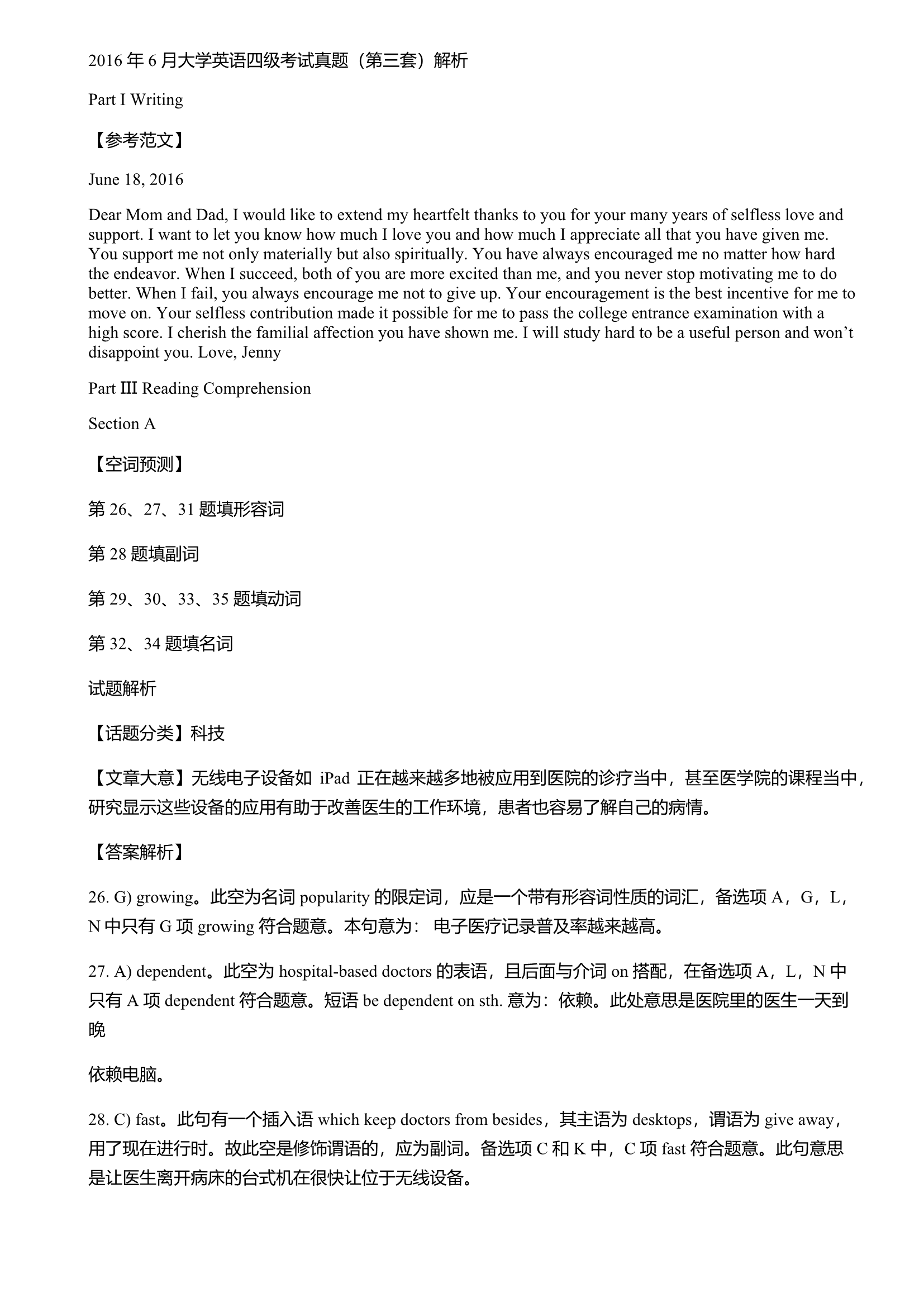 2016年6月大学英语四级真题答案解析(第3套)