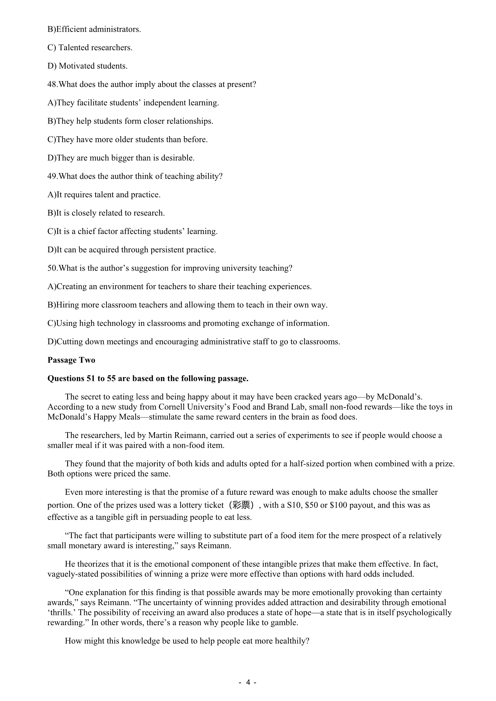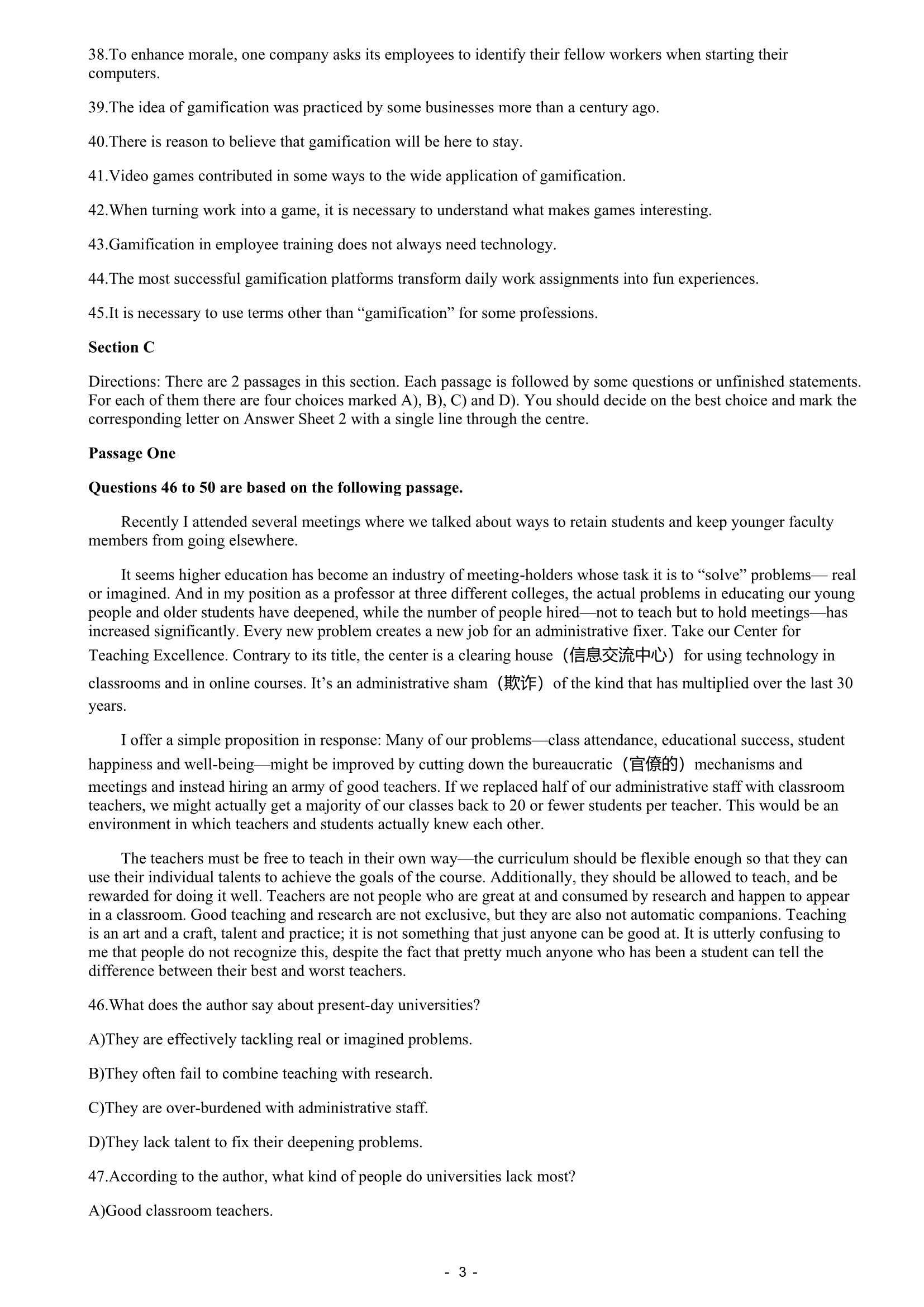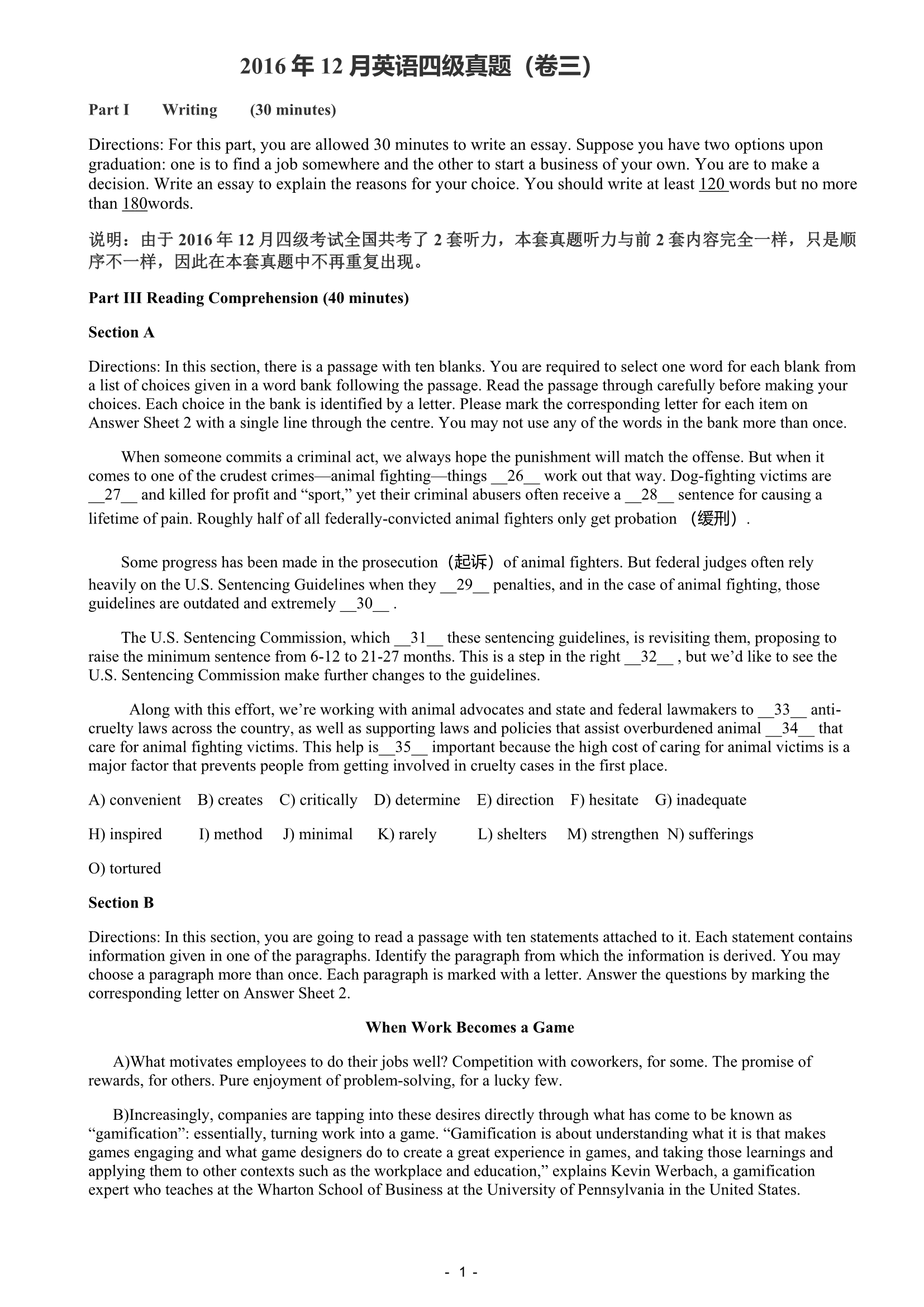 2016年12月大学英语四级真题(第3套)