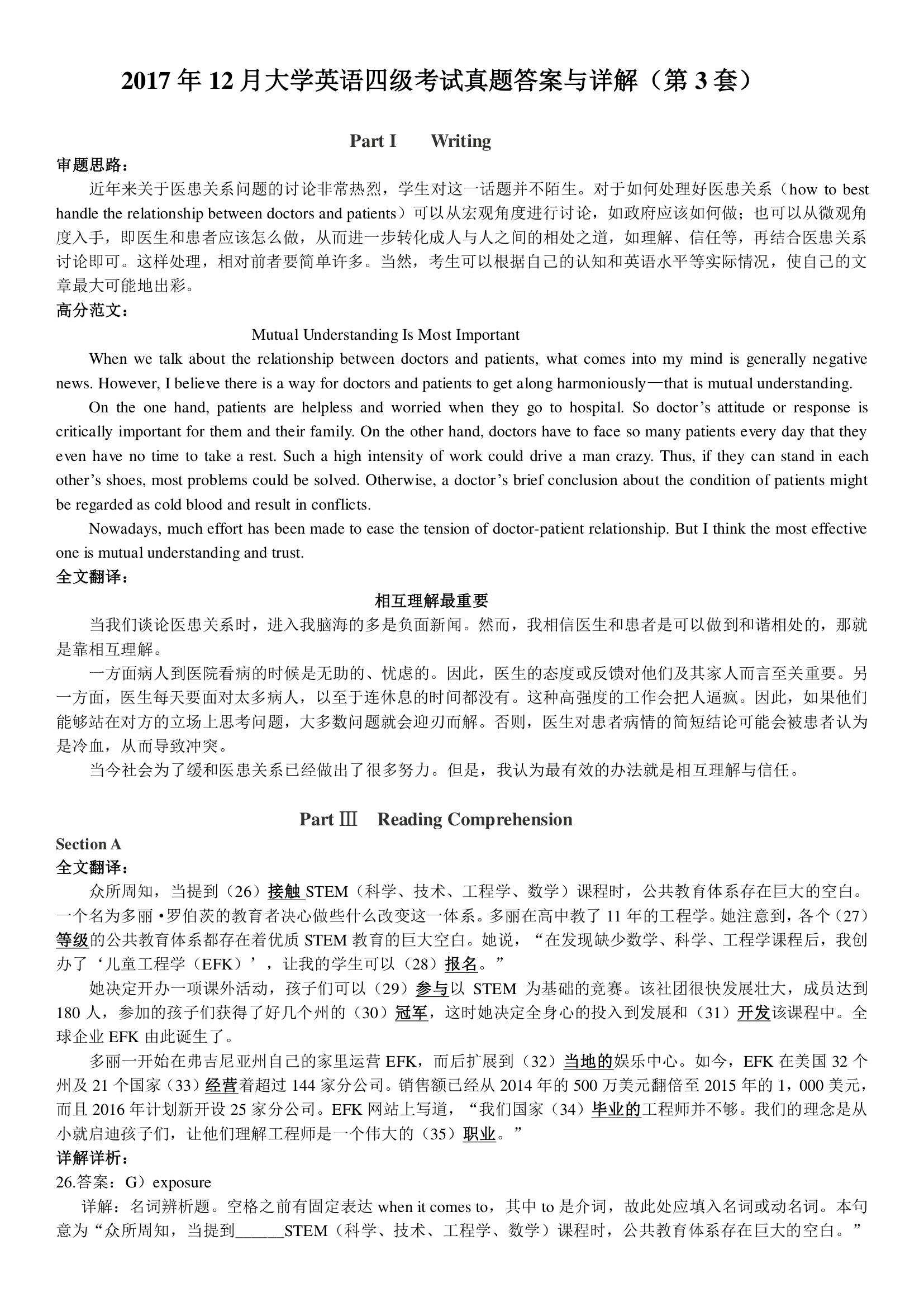 2017年12月英语四级真题答案及解析(第三套)