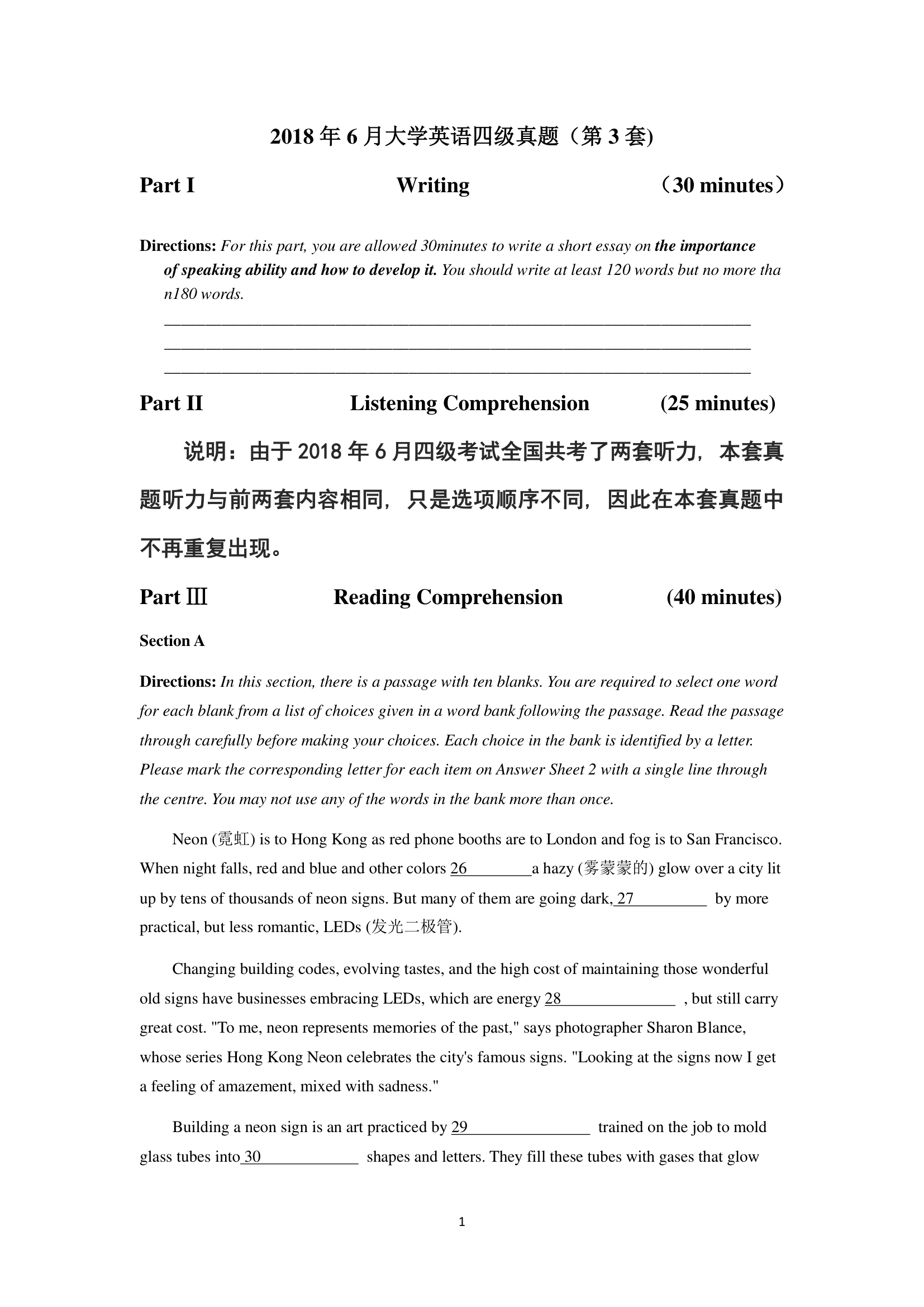 2018年6月英语四级真题(卷三)