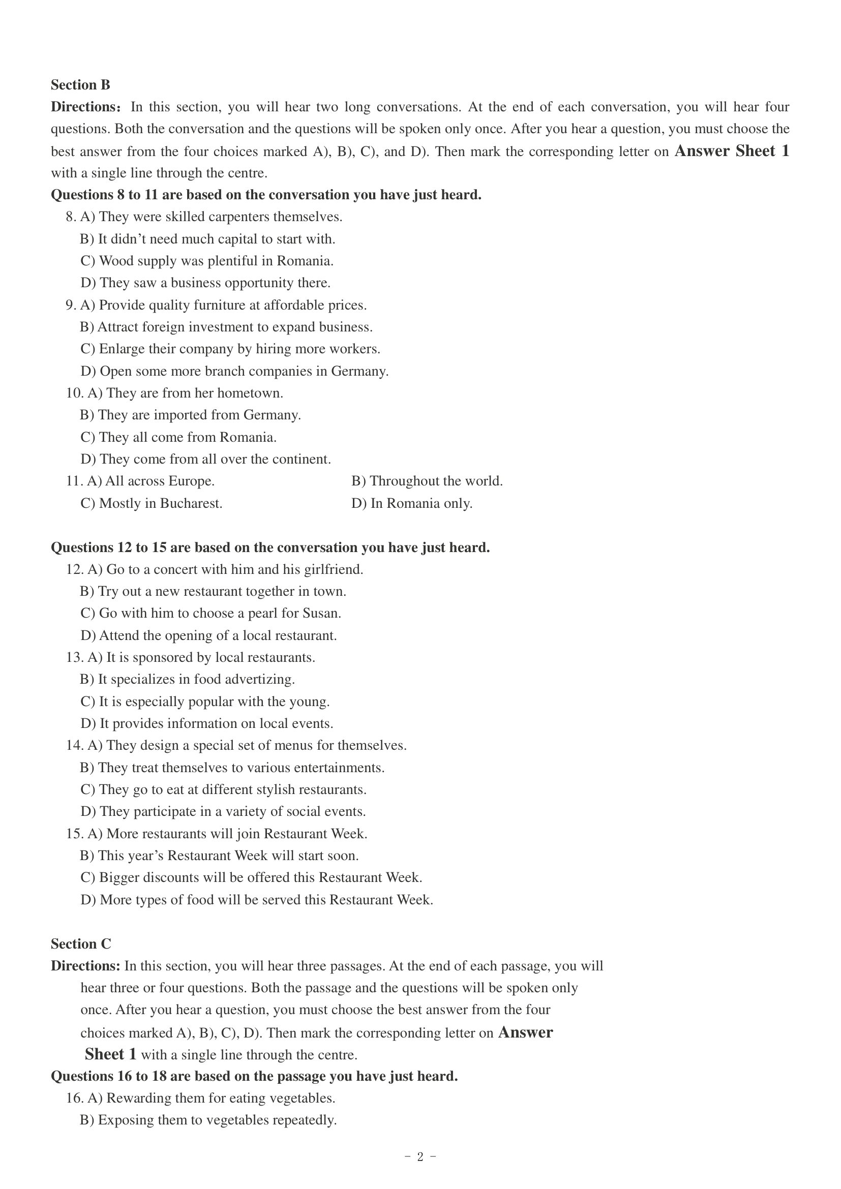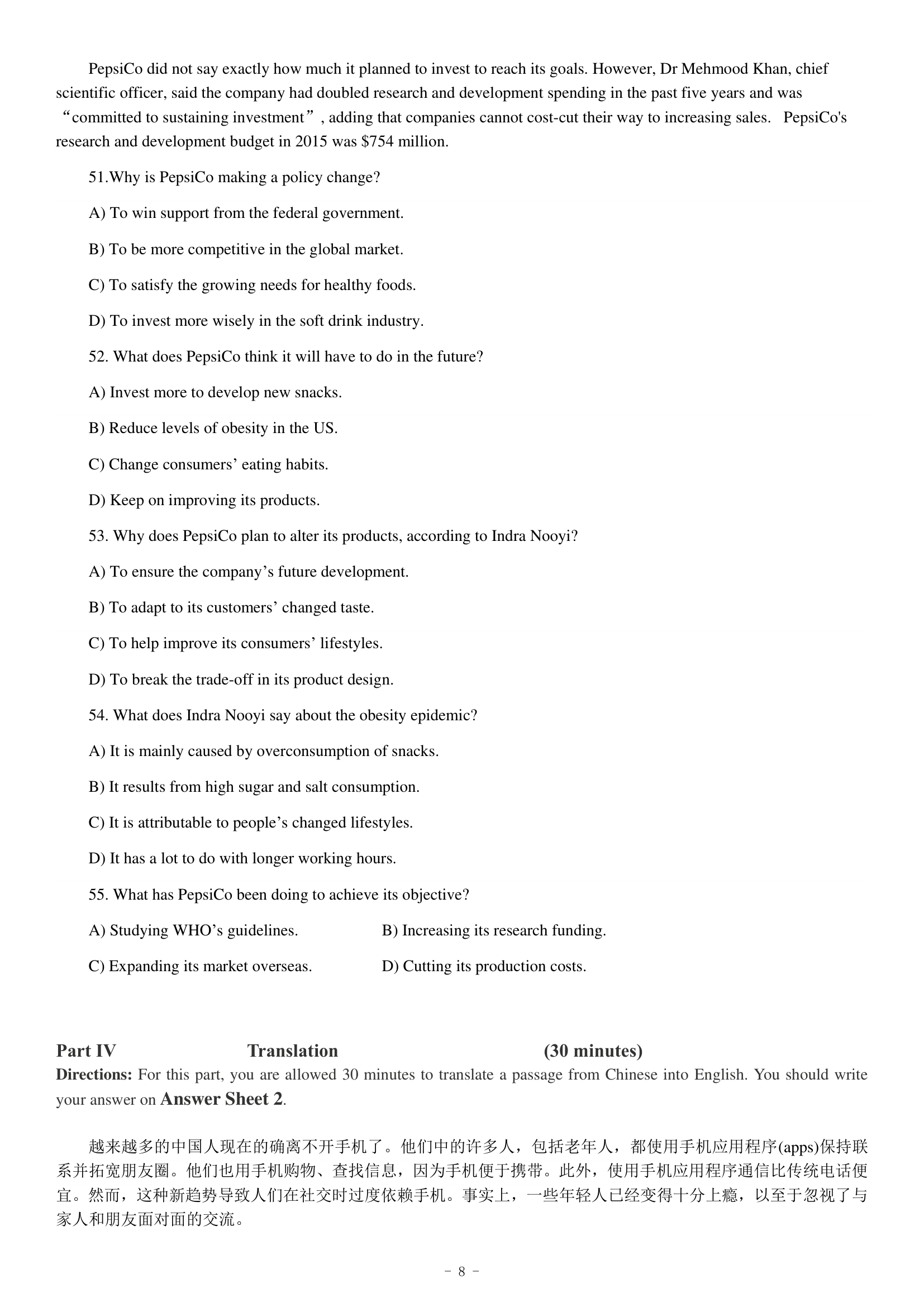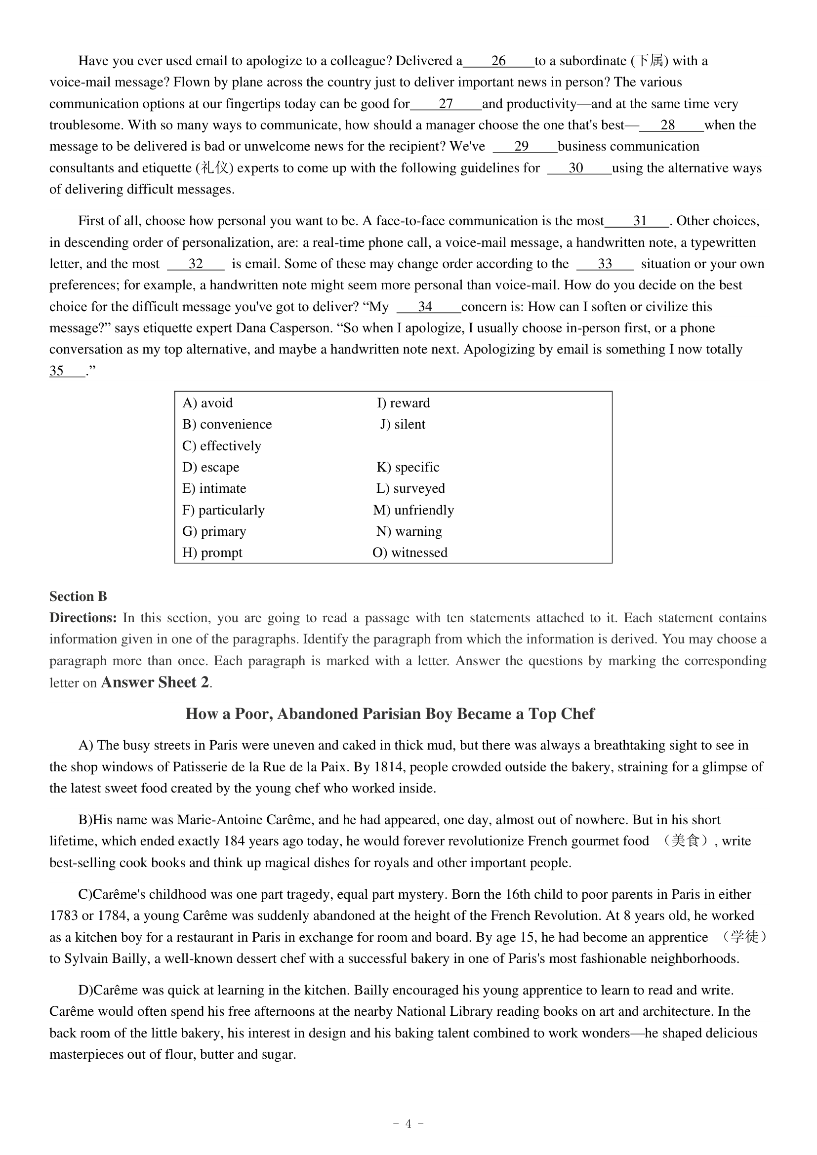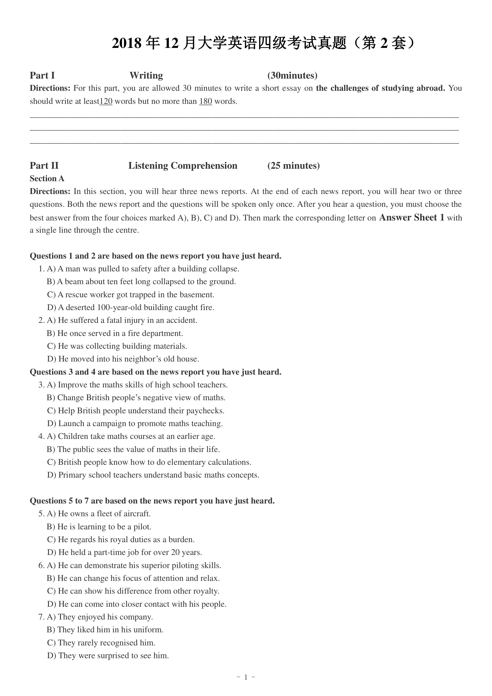 2018年12月英语四级真题(第二套)