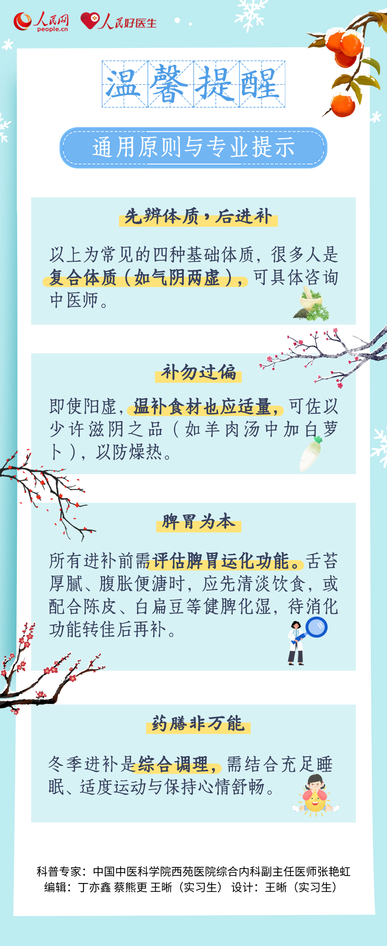 编者按:又到了一年中最寒冷的时候,俗话说“冬令进补,来年打虎”,这蕴含着中医顺时养生的智慧。然而进补的关键在于“辨证施补”。补不对证,反受其害,如何高效简单地辨识自己的体质精准进补?今天,一起来看看4种常见体质的简明辨识要点与专属进补方案。