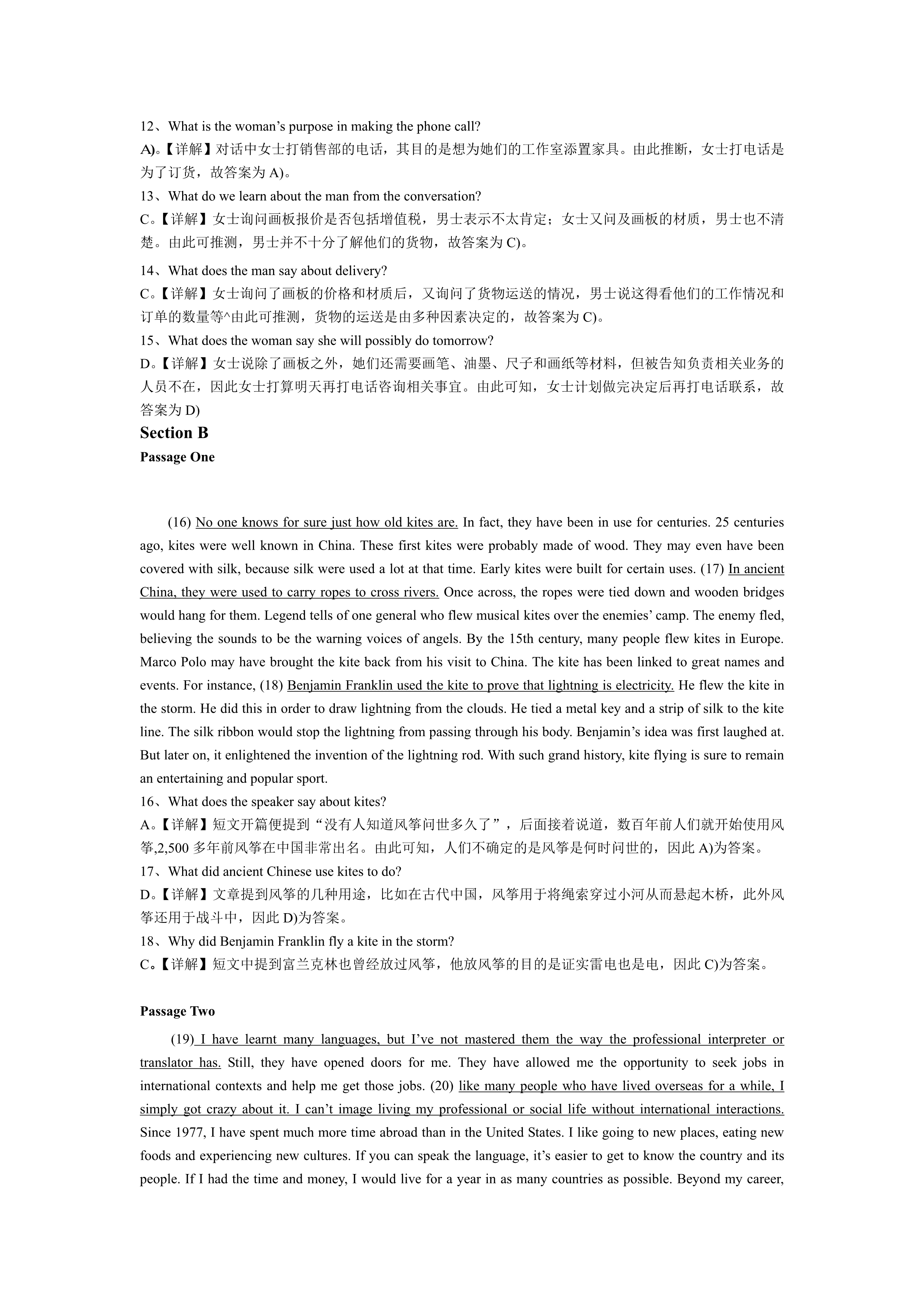 2015年12月英语四级真题答案及解析(第1套)