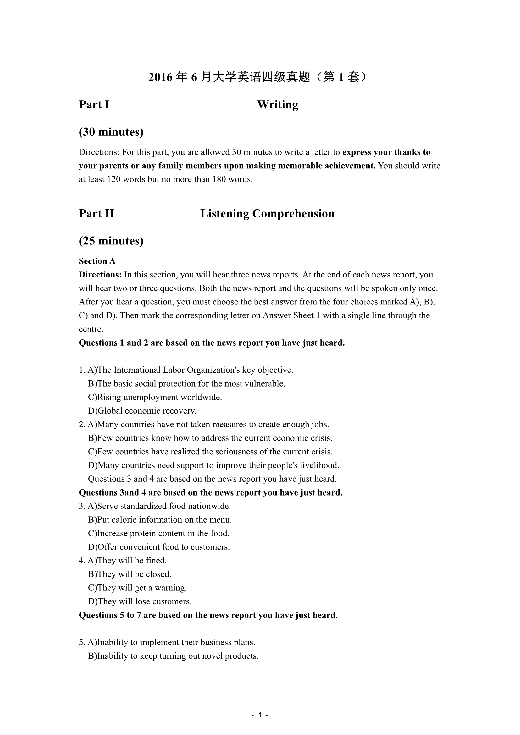 2016年6月大学英语四级真题(第1套)