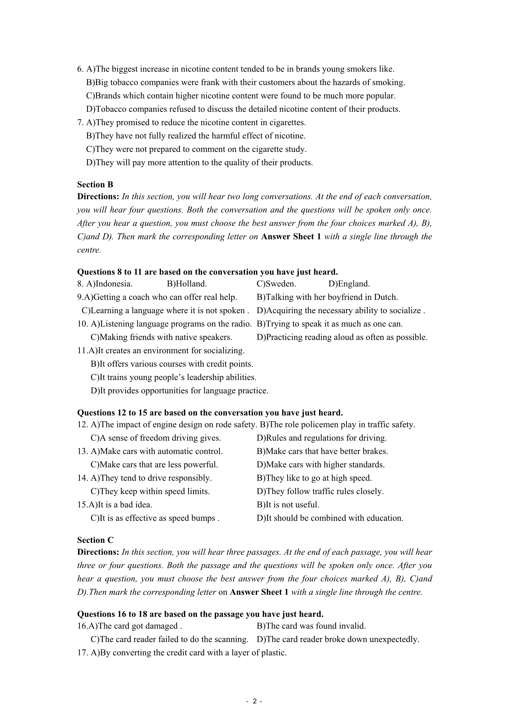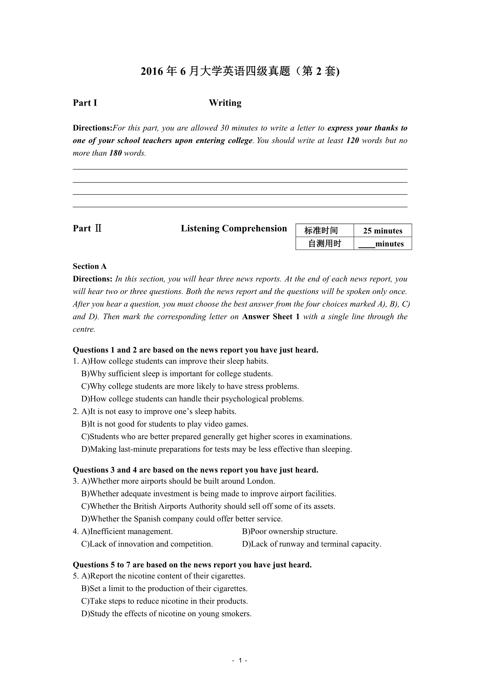 2016年6月大学英语四级真题(第2套)